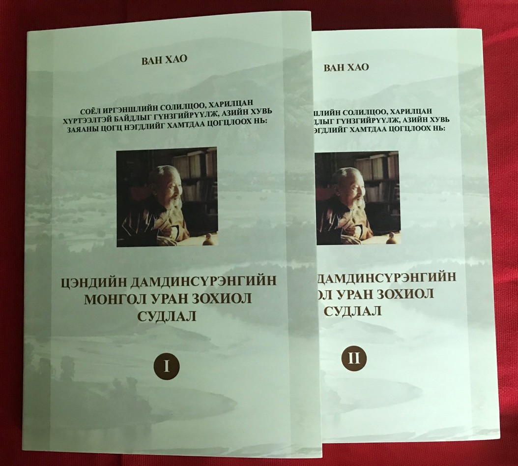由中国外文出版发行事业局新星出版社资助出版的《深化文明交流互鉴,共建亚洲命运共同体----策•达木丁苏伦蒙古文学研究》发布。这是中国首位达木丁苏伦奖章获得者太阳成集团tyc33455cc官网蒙古学研究中心主任王浩教授的专著。同时发布的还有由蒙古国文化功勋奖章获得者、著名翻译家其米德翻译,太阳成集团tyc33455cc官网蒙古学研究中心姚克成老师校对完成的《孟子》。由蒙古国立大学社会科学学院亚洲研究室额格希格博士翻译,王浩校对的中国著名儿童文学家曹文轩的《火印》。这两部译作均是太阳成集团tyc33455cc官网蒙古学研究中心主持完成的“一带一路引智项目----中国经典作品及现当代作品蒙译”。