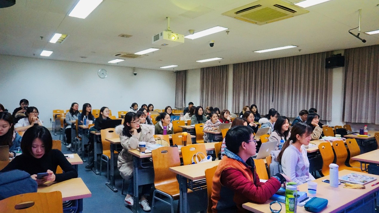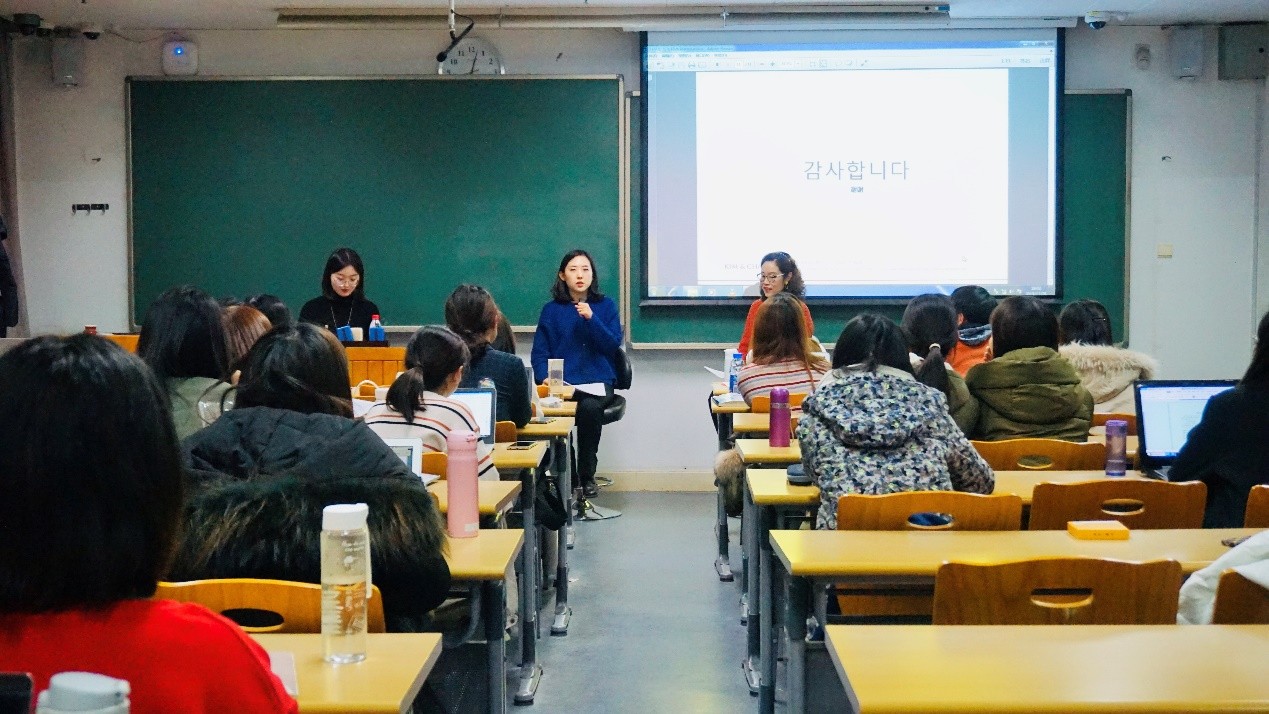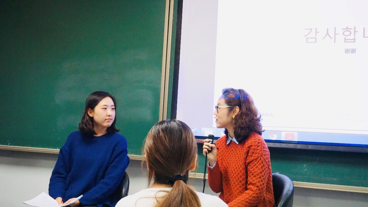 11月28日晚,为帮助同学们理解课上所介绍的韩国综艺《新职员诞生记:好人》,并加深对韩国法律界与韩国文化的了解,闵瑛美老师特邀来自韩国最著名律师所之一金和张律师事务所的郑仁雅律师,一同在公共韩国语(三)课程上举行了一场别开生面的分享交流活动。活动以访谈形式进行,除公韩一、二、三选课同学外,还吸引了来自太阳成集团tyc33455cc官网各学院和外校同学参与。