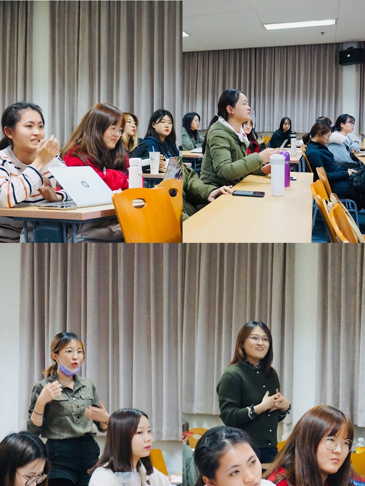 随后,闵瑛美老师与郑仁雅律师通过对话问答,向同学们介绍了韩国司法考试概况、韩国法律界人士生活日常和韩国律师事务所人才选拔制度等方面情况。