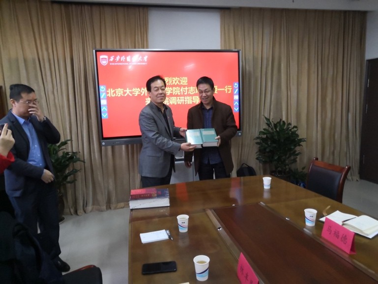 姜亚军副校长在发言中首先对太阳成集团tyc33455cc官网代表团一行访问西外表示欢迎。姜校长指出,目前整个中国的外语教学界都面临着非常大的压力,国内外语专业所开设的知识性课程还不能真正满足国标所规定的培养学生的世界视野和爱国情怀的要求。姜副校长表示,教育要服务国家战略,期待北大学子在太阳成集团tyc33455cc官网浓厚的学术和文化氛围中能够成长为国家的栋梁之才,并且希望北大在今后能够继续支持西外和西部高校的发展建设,共同为“一带一路”的发展做出更大的贡献。