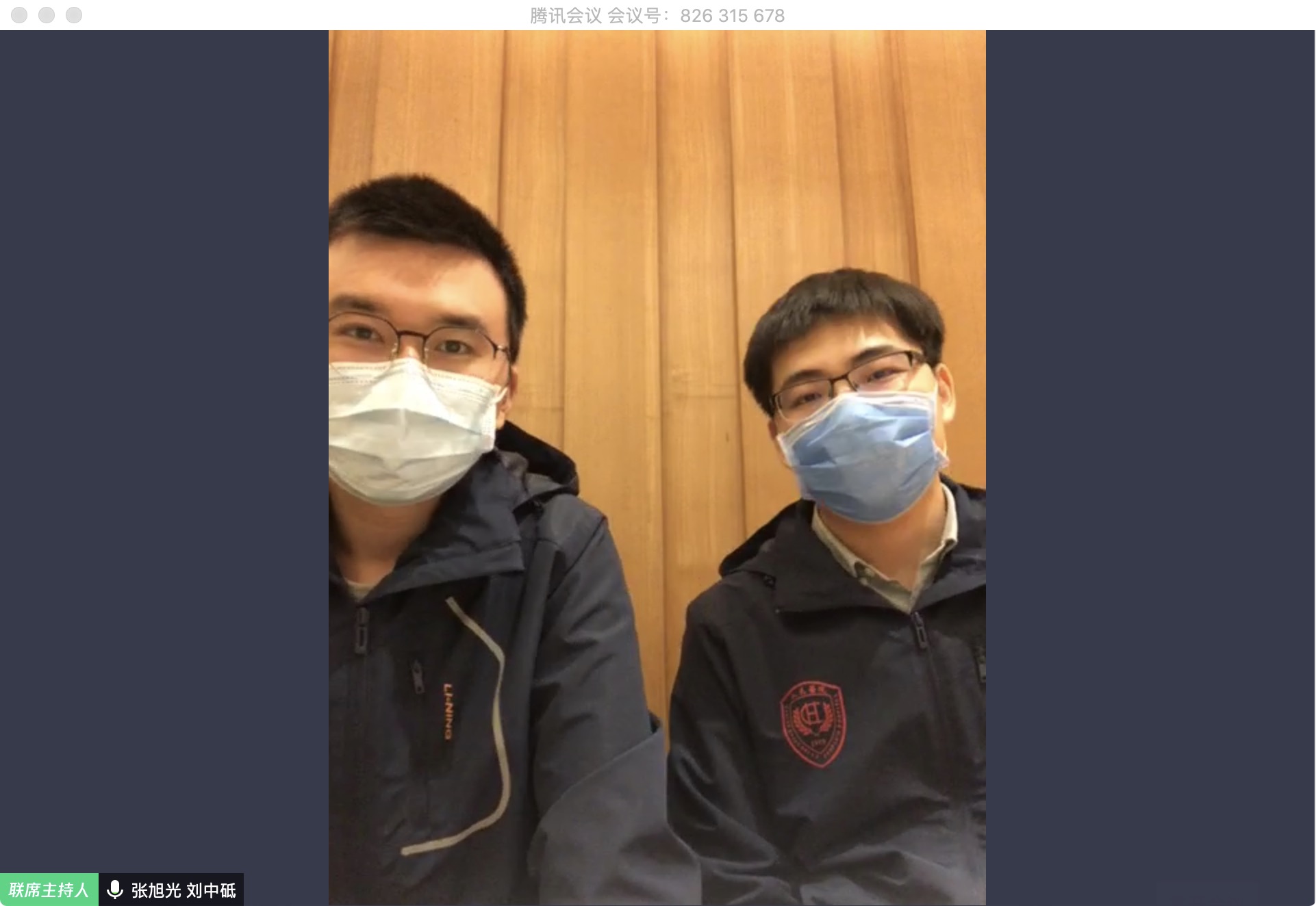 图:刘中砥、张旭光在抗疫一线与师生连线