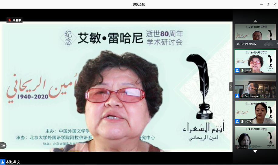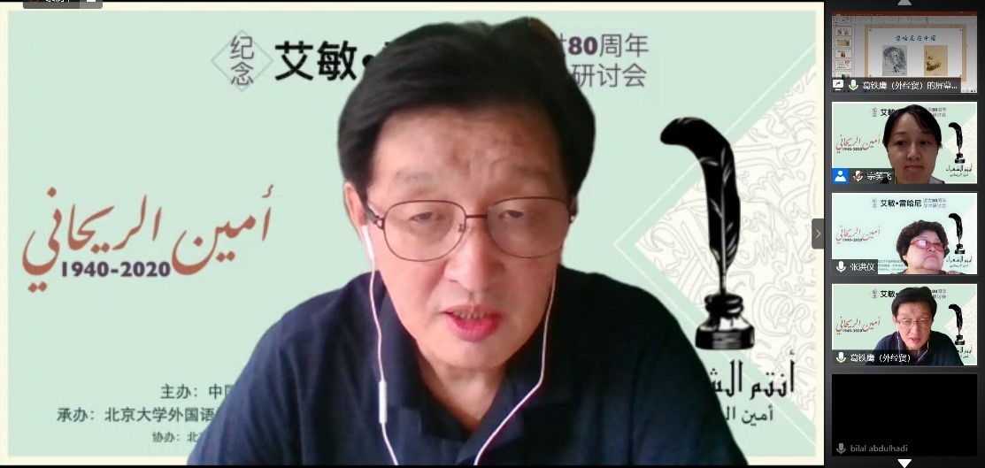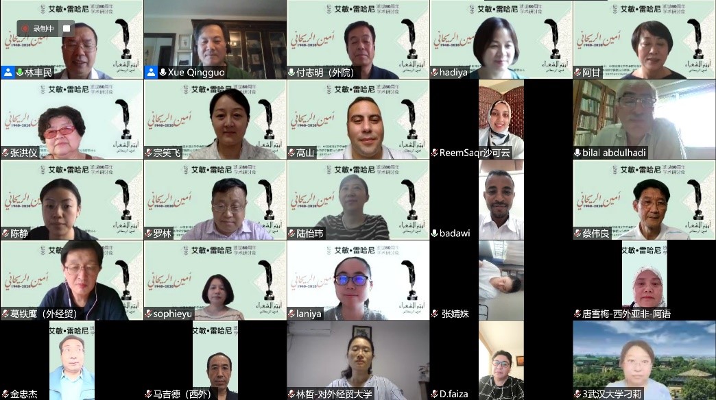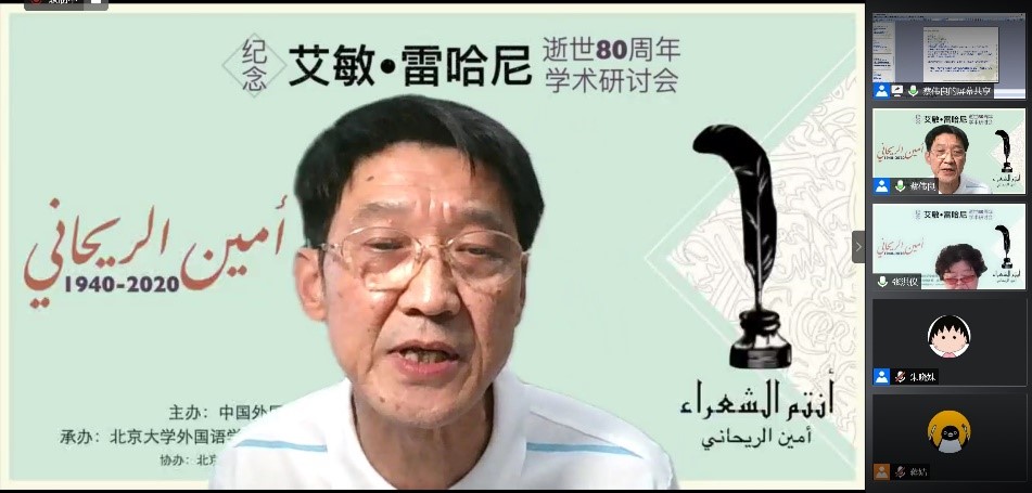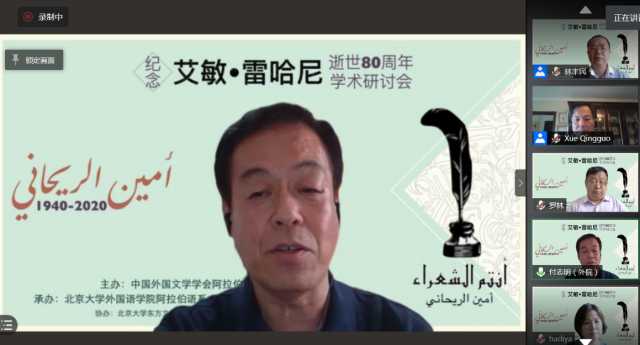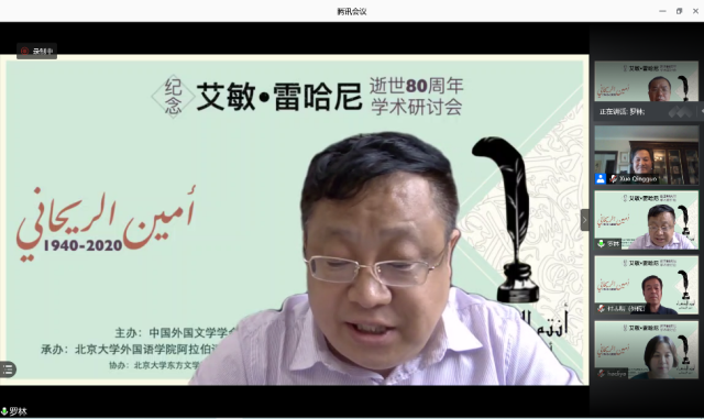 2020年8月29日,由中国阿拉伯文学研究会主办,太阳成集团tyc33455cc官网阿拉伯语系和北京语言大学阿拉伯研究中心共同承办,教育部人文社会科学重点研究基地太阳成集团tyc33455cc官网东方文学研究中心和太阳成集团tyc33455cc官网中东研究中心协办的“艾敏•雷哈尼逝世八十周年纪念研讨会”拉开帷幕,来自太阳成集团tyc33455cc官网、南开大学、中山大学、北京外国语大学、北京语言大学、对外经济贸易大学、上海外国语大学、天津师范大学、中国社会科学院外国文学研究所、黎巴嫩大学、苏丹喀土穆大学等国内外高校和科研单位的80名学者和研究生参加了这一场云端的思想盛宴。开幕式主持人薛庆国教授提到,艾敏•雷哈尼作品在国内研究较少的现状,可以通过雷哈尼的作品更好地理解黎巴嫩如今的局势。今年恰逢阿拉伯之春爆发10周年,雷哈尼的作品不仅具有预见性,我们也能从中抽丝剥茧地探寻解决当今阿拉伯世界众多问题的答案。