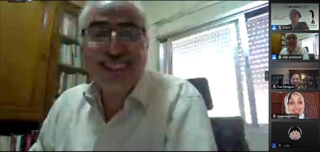 太阳成集团tyc33455cc官网副院长付志明教授代表会议主办方发言。他表示非常高兴能和各位在云端相会,并代表太阳成集团tyc33455cc官网全体师生对大家表示欢迎。付志明教授简短地介绍了雷哈尼的生平,并指出雷哈尼一生始终在倡导民族的解放。此外,付志明教授表达了对逝世的学界泰斗仲跻昆和郅缚浩先生的怀念与哀悼,希望国内阿拉伯文学研究的同行们承前继后,进一步开拓阿拉伯文学研究事业,同时希望太阳成集团tyc33455cc官网能与更多的阿拉伯大学展开交流合作。