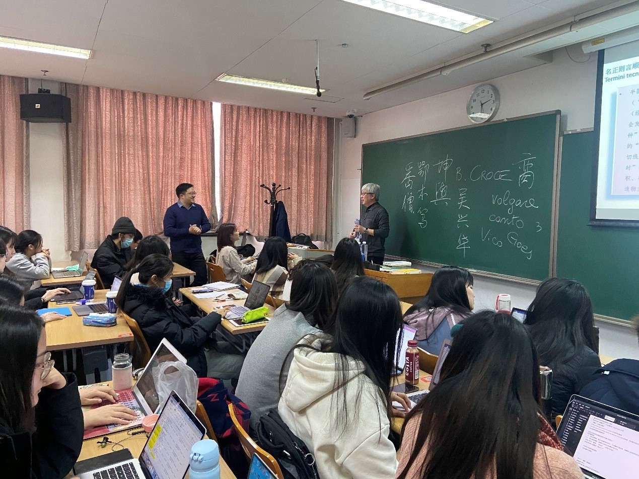 问答环节,中文系比较文学的一位博士就卡尔维诺与维科的语言和翻译,意大利人的文艺复兴观以及埃科与《玫瑰的名字》等多个话题与文老师开展了深入交流。学生们表示,通过此次讲座,对于中意交流史有了更全面的了解,并对意大利语学习及意大利文化研究产生了更加浓厚的兴趣。