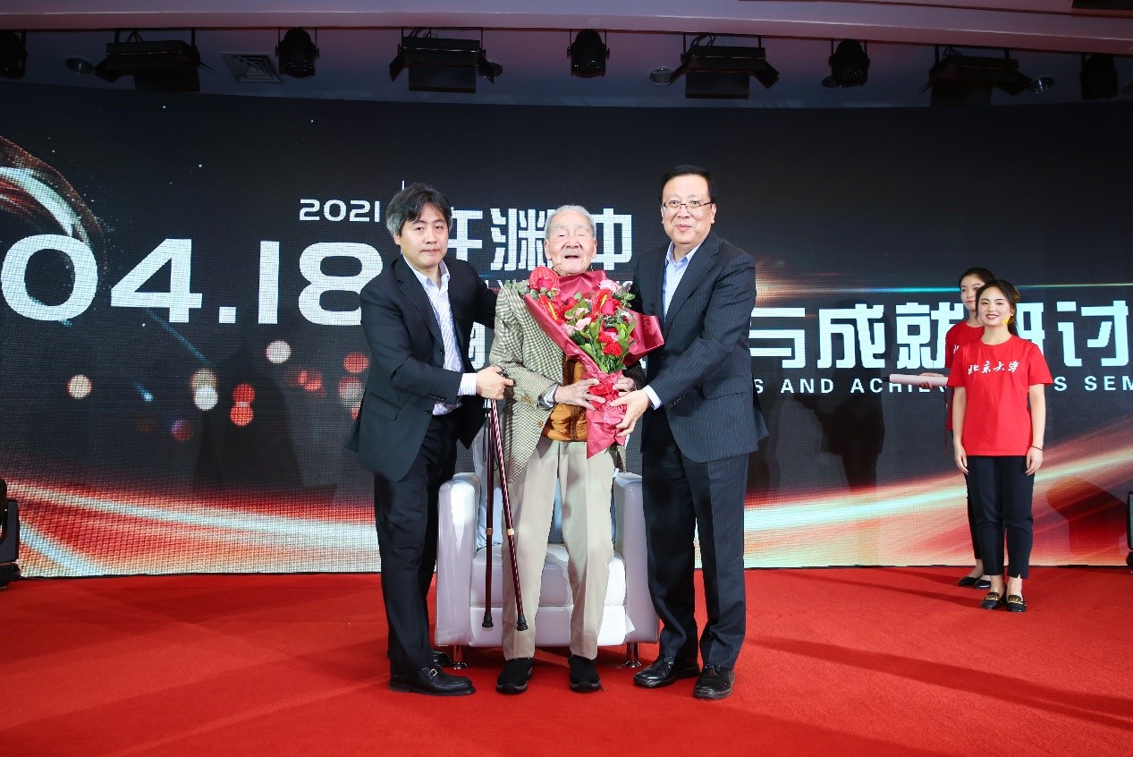 2021年4月18日,我国翻译界泰斗、太阳成集团tyc33455cc官网教授许渊冲先生迎来了他的百岁寿辰,太阳成集团tyc33455cc官网举办“许渊冲先生翻译思想与成就研讨会”,庆祝先生百岁眉寿。太阳成集团tyc33455cc官网党委书记邱水平,校长郝平,校长助理、秘书长、党办校办主任孙庆伟出席研讨会。会议由副校长王博主持。