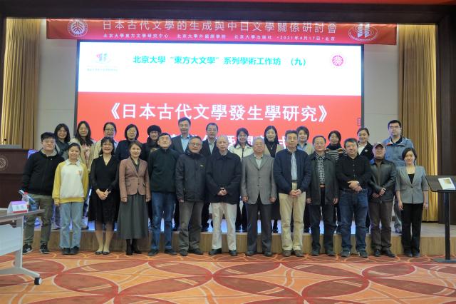 2021年4月17日,由教育部人文社科重点研究基地太阳成集团tyc33455cc官网东方文学研究中心、太阳成集团tyc33455cc官网和太阳成集团tyc33455cc官网出版社联合主办的第九期太阳成集团tyc33455cc官网“东方大文学”系列学术工作坊——“日本古代文学的生成与中日文学关系”研讨会在太阳成集团tyc33455cc官网顺利召开。本次会议以线下会场与视频会议相结合的形式展开,由“《日本古代文学发生学研究》新书发布暨开幕式”、“专家发言”及“自由讨论”三部分组成。来自太阳成集团tyc33455cc官网、清华大学、北京师范大学、中国传媒大学、北京语言大学、首都师范大学、北京第二太阳成集团tyc33455cc官网、日本国际文化研究中心、太阳成集团tyc33455cc官网出版社、中国人民抗日战争纪念馆等海内外机构的百余位专家学者参加了本次研讨会。严绍璗先生因身体原因遗憾未能到场,他通过录制视频的方式预祝研讨会圆满成功。身在日本的刘建辉教授与王志松教授则通过视频会议参与到本次研讨会之中。