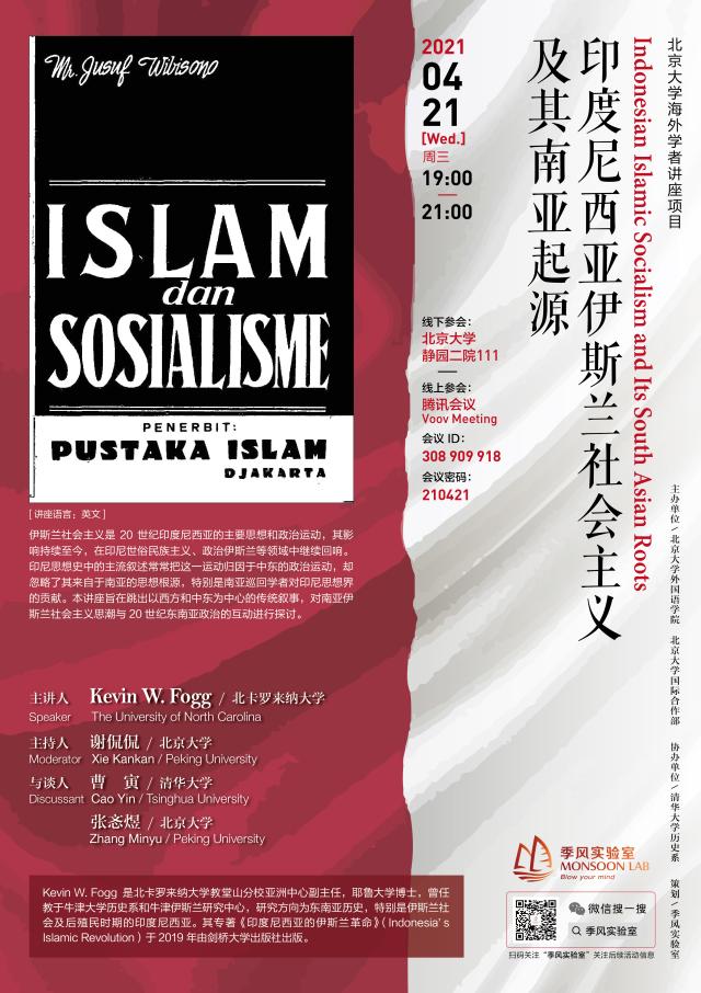 2021年4月21日,太阳成集团tyc33455cc官网在国际合作部“海外学者讲座项目”的支持下举办了题为“印度尼西亚伊斯兰社会主义及其南亚起源”的讲座。主讲人Kevin William Fogg博士是北卡罗来纳大学教堂山分校亚洲中心副主任。Fogg博士曾任教于牛津大学历史系和牛津伊斯兰研究中心,研究方向为东南亚历史,特别是伊斯兰社会及后殖民时期的印度尼西亚。其专著《印度尼西亚的伊斯兰革命》(Indonesia’s Islamic Revolution)于2019年由剑桥大学出版社出版。
