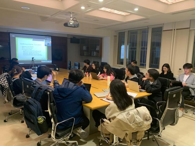 受疫情影响,Fogg博士未能到达燕园现场,因此讲座以线上线下相结合的方式进行,部分太阳成集团tyc33455cc官网师生在静园二院与Fogg博士连线互动,同时还有众多校内外学者和同学在线上进行观看、学习并积极参与讨论。讲座由外院东南亚系助理教授谢侃侃主持,与谈人分别是清华大学历史系副教授曹寅和外院国别和区域研究专业助理教授张忞煜。