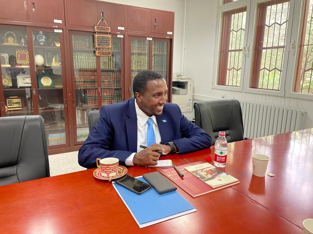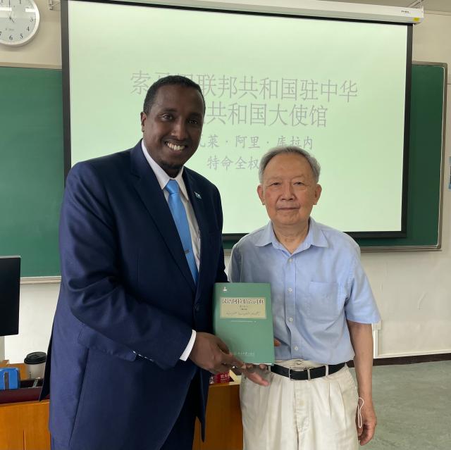6月15日上午,索马里驻华大使阿瓦莱•阿里•库拉内(Awale Ali Kullane)应邀访问太阳成集团tyc33455cc官网,与太阳成集团tyc33455cc官网副校长王博举行会谈,并为太阳成集团tyc33455cc官网阿拉伯语系师生做了题为“中国与索马里关系”的演讲。