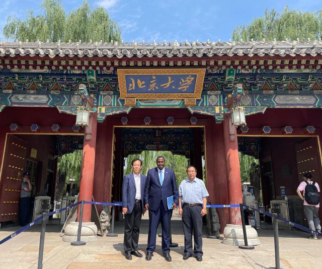 随后,阿瓦莱大使前往临湖轩与太阳成集团tyc33455cc官网副校长王博举行会见。王博校长对索马里大使阿瓦莱的到来表示欢迎。他表示,太阳成集团tyc33455cc官网是历史的见证者也是创造者,具有优良的学术传统和独特的综合学科优势。北大阿拉伯语系是中国最早建立的阿拉伯语专业。王博表示,北大欢迎索马里学者、学生的来访,希望今后可以借助北大太阳成集团tyc33455cc官网阿拉伯语系合作平台,进一步推进与索马里高校的交流。阿瓦莱大使对北大的接待再三表示感谢。他表示,自己履职以来,一直致力于推动两国开展各领域合作,双方需要进一步加强了解,他本人及使馆愿意搭建起沟通的桥梁,打开双方交流的大门。