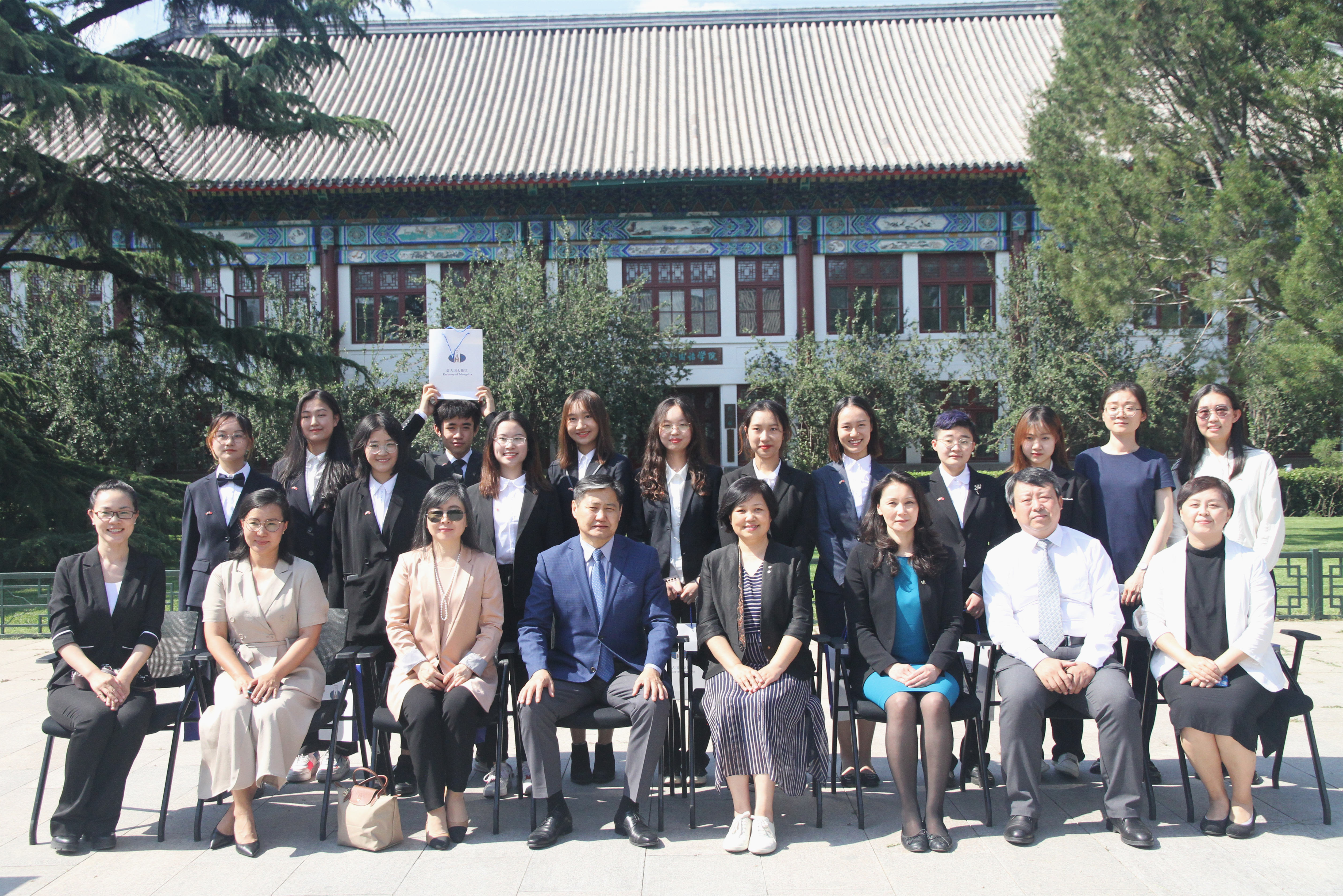 蒙古语专业2020级本科生为巴德尔勒大使一行演唱了歌曲《乌兰巴托之夜》。巴德尔勒大使表示,他本人出生在乌兰巴托,《乌兰巴托之夜》是他年青时代的流行歌曲,学生们悠扬的歌声唤起了他对家乡、对青葱岁月的美好回忆。