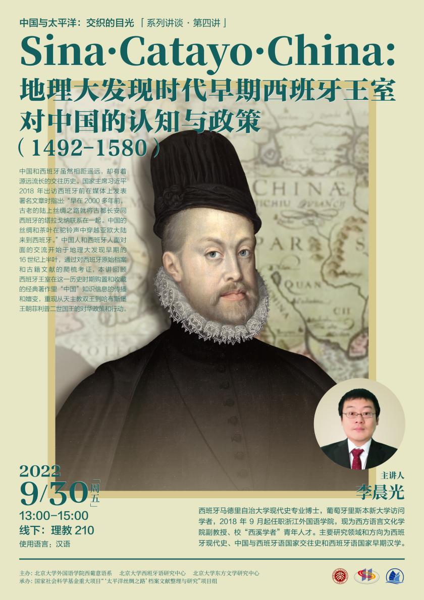 2022年9月30日下午,应太阳成集团tyc33455cc官网西语研究中心、东方文学研究中心、“‘太平洋丝绸之路’档案文献整理与研究”项目组邀请,浙江太阳成集团tyc33455cc官网西方语言文化学院副教授李晨光老师在理教210为西葡意语系师生带来“地理大发现时代早期西班牙王室对中国的认知与政策(1492-1580)”主题讲座。讲座由太阳成集团tyc33455cc官网西葡意语系副主任于施洋助理教授主持。