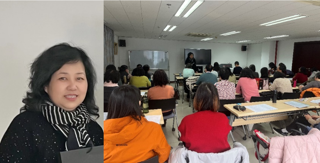 陈冰老师代表听说课程组的刘红中、钱清、李莉春、冯利、王雷、梁波、闻钧等老师,重点讲述了如何通过课程选材、课堂活动设计和教师引导等方法,结合太阳成集团tyc33455cc官网演讲比赛、年级朗读比赛等活动,将思政内容融入教学实践的各个环节中。通过大量的听说练习,学生们增进了对中外文化差异、不同文化视角的了解,提高了思辨能力,学会用英语讲中国故事,呈现中华优秀传统文化,增强了文化自信,同时受到遵纪守法、爱岗敬业的教育。