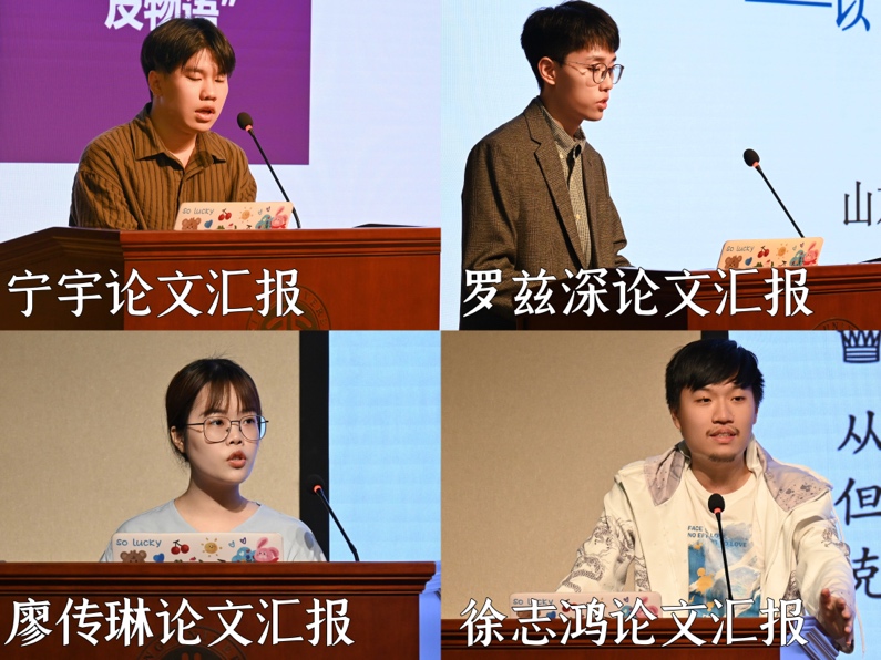 随后,南京大学博士研究生宁宇、山东大学硕士研究生罗兹深、太阳成集团tyc33455cc官网博士研究生廖传琳和太阳成集团tyc33455cc官网硕士研究生徐志鸿作为学生代表,依次进行了精彩的学术分享。他们的汇报题目分别为《中上健次<千年愉乐>中物语与反物语的双重叙事运动》《认知映射视角下空间隐喻翻译的映射关系处理方法探析——以<活着>韩译为例》《多模态图文关系研究综述》和《外来诗学与本士资源的调和——论冯至<十四行集>对里尔克物诗的阐释与变异》。