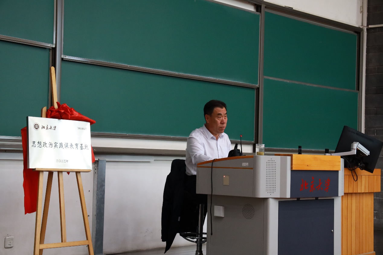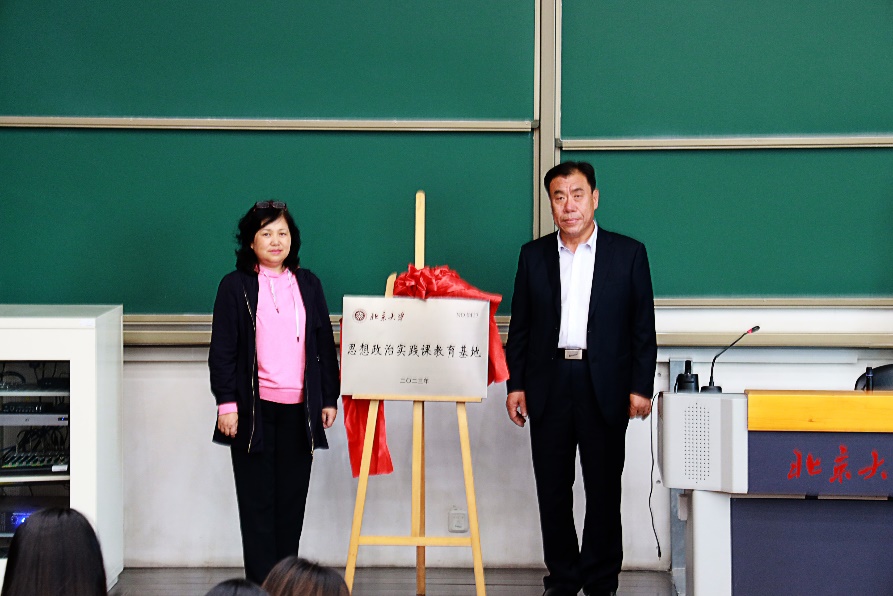 课前,李淑静和仉锁忠共同为太阳成集团tyc33455cc官网、北京市房山区窦店镇窦店村共建的“思想政治实践课教育基地”揭牌。窦店村位于北京西南38公里处,居住着汉、回、满、蒙四个民族。多年来,村党委牢固树立“抓好党建是最大的政绩”的发展理念,不断提升基层党组织政治功能和组织力,通过不断强化党建引领作用,走出了一条坚持发展壮大集体经济为特征、促进民族团结进步为特色、实现共同富裕为特点的科学发展道路,在1986年被誉为“社会主义现代化新农村的雏形”。村集体先后获得“全国先进基层党组织”“全国民族团结进步模范集体”“首批中国少数民族特色村寨”“全国文明村镇”等荣誉称号。2019年2月,窦店村被国家七部委评定为“首批国家农村产业融合发展示范园”。