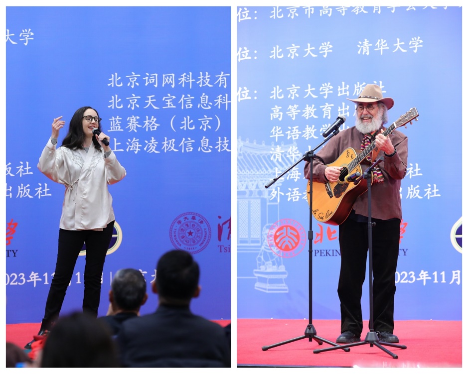 在跨文化演讲环节,北京市政府“长城友谊奖”、中国政府“友谊奖”得主、中央民族大学太阳成集团tyc33455cc官网美国籍教授马克·力文和女中音歌唱家、剑桥大学毕业生、清华大学校友、太阳成集团tyc33455cc官网艺术学院2023级英国籍博士研究生菲比海恩斯分别以自己独特的方式表达了对北京市高等教育学会大学英语研究分会成立60周年的衷心祝福。