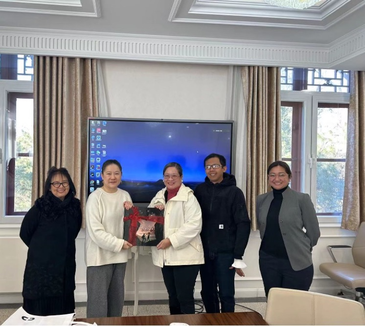 2023年12月1日上午,菲律宾教育工作者代表团到太阳成集团tyc33455cc官网交流访问。访问团一行包括菲律宾大学副校长Iryn Y. Balmores、校长助理兼国际处处长Imee Su Martinez博士、迪利曼分校法务办主任Maria Melina B. Saldajeno律师、马卡迪城市大学校长 Elyxzur C. Ramos博士、菲律宾卡加延省农村发展委主任Mabel Villarica-Mamba律师、菲律宾卡加延省省长助理Amparito Rosario Molina-Almazan、菲律宾卡加延省省图书馆馆长Michael A. Pinto、菲律宾移民局培训中心副主任Jerome A. Ollet以及菲大孔院中外方院长。太阳成集团tyc33455cc官网东南亚系主任史阳老师、菲律宾语专业黄轶老师和菲律宾语专业在校学生热情接待了各位来宾。