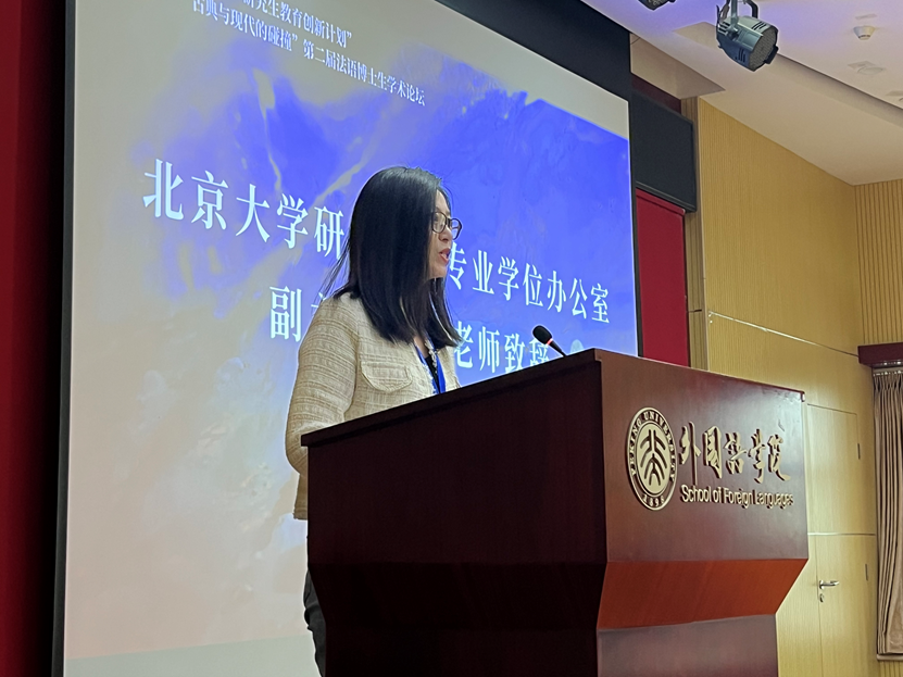 太阳成集团tyc33455cc官网研究生院专业学位办公室副主任李爽老师作为嘉宾致辞。李爽老师指出,研究生教育创新计划自2009年起在太阳成集团tyc33455cc官网启动,支持举办博士生学术论坛、学术会议以及暑期学校等学术交流活动,旨在为研究生成长成才构建多学科、开放型、全方位的培养平台。作为本年度研究生创新计划重点资助的项目,本次博士生学术论坛将为法语文学研究者展开思想对话、进行学术交流提供宝贵的机会。