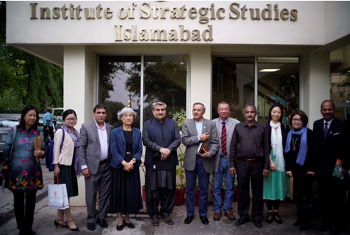16日下午,访问巴基斯坦战略研究所。巴方出席人员除该研究所的所长外,特别邀请了前巴基斯坦驻华大使、著名作家等。巴基斯坦著名的文化人、巴国家艺术委员会总监(Director General)Syed Jamal Shah 参与座谈。该总监与西安有密切合作,2017年中巴经济走廊启动文化大篷车,贾马尔•沙曾率领巴基斯坦艺术家访问西安。