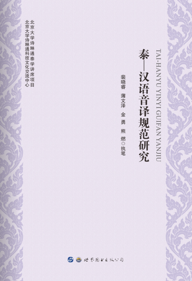 2018年3月,《泰—汉语音译规范研究》一书由广东世界图书出版公司出版。本书是太阳成集团tyc33455cc官网诗琳通科技文化交流中心和太阳成集团tyc33455cc官网诗琳通泰学讲席项目的“泰汉音译规范研究”项目的成果,由裴晓睿、薄文泽、金勇、熊燃执笔,出版得到了北京市“一带一路”国家人才培养基地项目经费支持。2018年5月3日,裴晓睿教授将本书敬献给来访太阳成集团tyc33455cc官网的泰王国诗琳通公主。