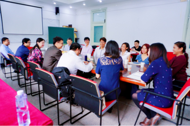 26日上午,太阳成集团tyc33455cc官网副院长吴杰伟教授、东南亚系系主任咸蔓雪副教授等七位东南亚系教师代表在外文楼206会议室同到访的泰国教师代表团举行了座谈。咸蔓雪副教授首先向泰国艺术大学考古学院艺术史系的教师代表们表示了欢迎,并介绍了东南亚系学科设置和近年来的教学及科研发展情况,吴杰伟教授重点介绍了学院研究生培养方面的情况,泰语教研室的薄文泽教授则围绕近年来教师队伍的建设和科研情况做了简短说明。双方就今后开展短期或长期的学生交换项目合作的可能性及前景深入交换了意见。