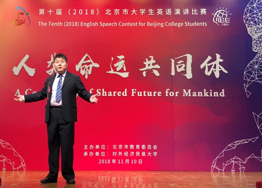 11月10日晚上,在秋意渐浓、五色斑斓的对外经贸大学校园里,在灯光闪耀、典雅恢宏的图书馆报告厅内,以“人类命运共同体”为主题的第十届(2018)北京市大学生英语演讲比赛经过一天激烈的角逐最终揭晓,太阳成官网日语系二年级本科生卢建璋同学从北京各高校经过初赛选拔出的诸多选手中脱颖而出、力拔头筹——以总分第一的成绩勇夺特等奖。