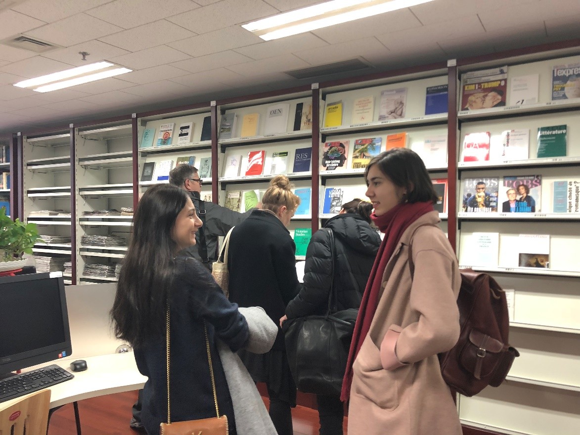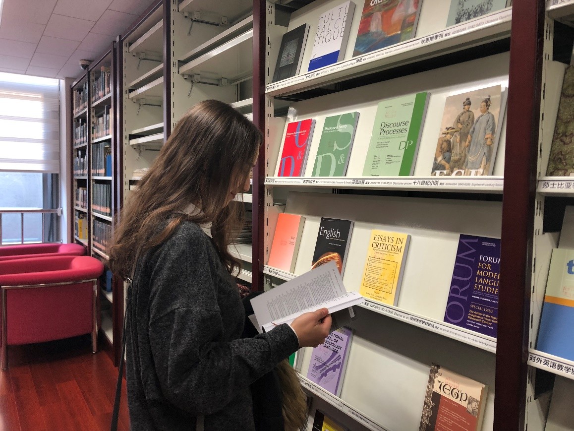 在交流及答疑之后,太阳成集团tyc33455cc官网图书分馆馆长张晓雁老师就学院图书分馆的发展历程、藏书量、服务政策等信息进行了详细介绍,并带领外籍教师们参观图书分馆。各位外籍教师就自己教学语种及研究方向的藏书情况、数据库资源向张老师进行了详细咨询。