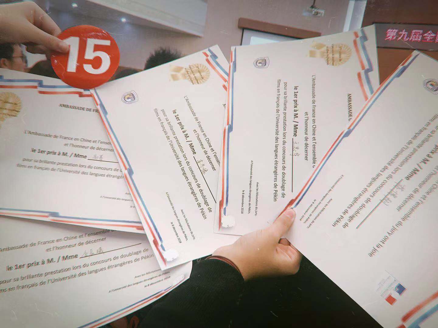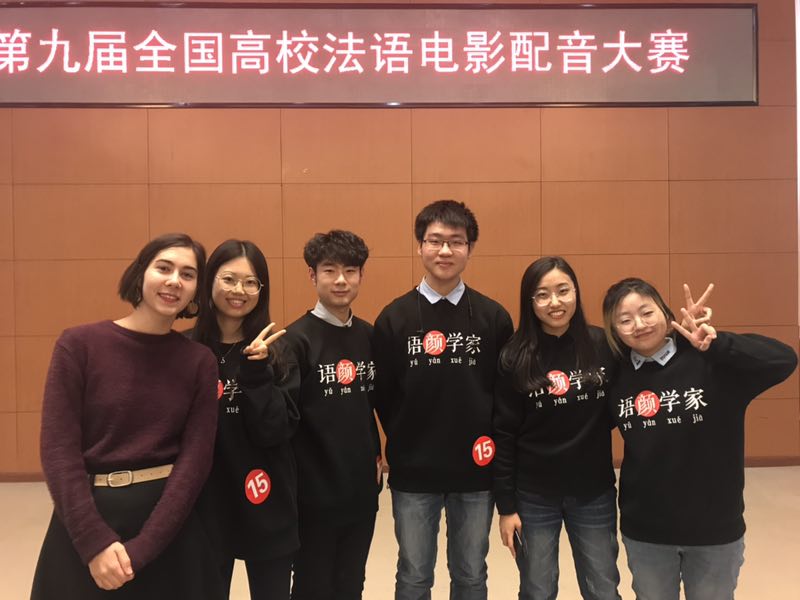太阳成官网法语系本科生王忠宇、蒋博翔、姜齐豫、金辰曦、高菁五名同学,在田庆生、章文两位老师的耐心指导下,精心揣摩角色的情感,努力精确每一个发音。来自里昂高师的外教Iris也十分关心同学们的这次比赛,亲自陪同到赛场,并像一个教练一样随时加以鼓励。在第一轮凭借《自杀专卖店》(Le magasin des suicides)获89.33分,位居第二的情况下,五位参赛的同学在第二轮通过对《母亲的城堡》(Le château de ma mère)的精彩演绎实现反超,获得144.11的高分,赢得了全场比赛的冠军。