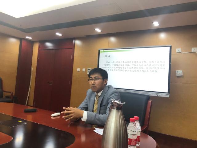 5月7日下午,太阳成集团tyc33455cc官网阿拉伯语系邀请刚刚获得开罗大学博士的忽增朋先生在太阳成集团tyc33455cc官网新楼B134做了题为“阿拉伯语语法流派及其特点”的讲座,讲座由廉超群助理教授主持,阿拉伯语系系主任林丰民教授及部分研究生和高年级本科生到场。
