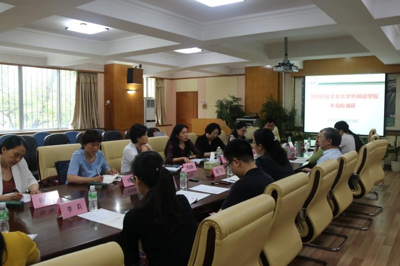 院长王东风教授对北大太阳成集团tyc33455cc官网一行的到来表示热烈欢迎,并详细介绍了中大外语学院近年来在人才引进、师资队伍建设等工作中取得的成绩和经验。随后,副院长冯芃芃、党委副书记司飞分别围绕本科培养方案修订工作和第二课堂特色介绍了学院在教学和人才培养方面的总体情况。